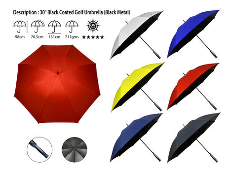 Description : 30" Black Coated Golf Umbrella (Black Metal)